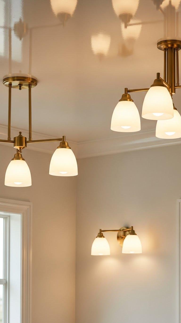 Metallic finishes are your secret weapon for amplifying light without raising wattage: polished brass, satin nickel, and warm chrome reflect and scatter illumination, making ceilings feel higher and corners brighter. Choose brushed brass for warmth and subtle patina, pair with frosted glass shades to diffuse glare, and favor streamlined silhouettes. You’ll create airy, liberating spaces that feel intentional and effortlessly calm.