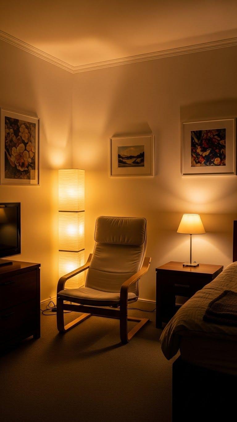 Frequently, you can transform a room simply by placing lamps where light pools naturally fall — beside a reading chair, at the foot of the bed, and near artwork — so shadows soften and surfaces glow.