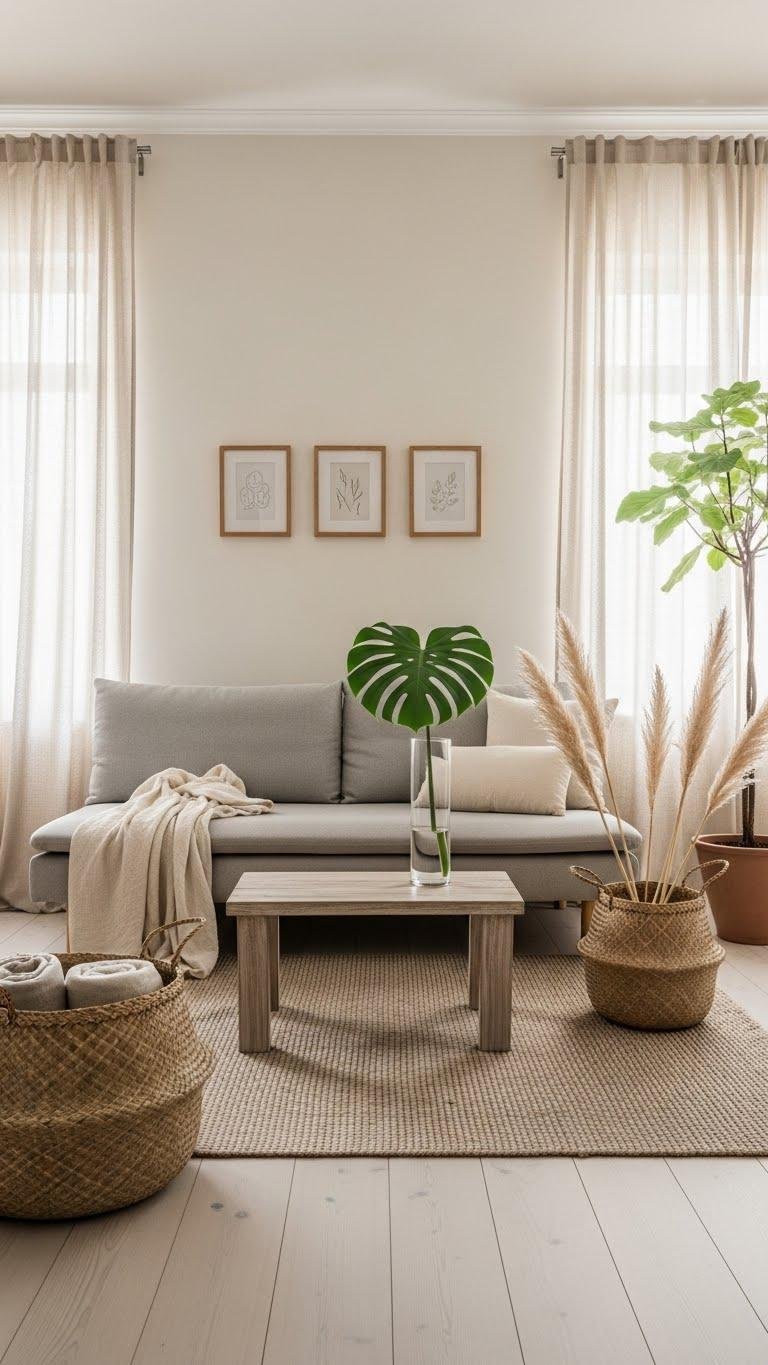 Layer in woven baskets, linen throws, and raw-wood frames to add texture you can touch. You’ll create a calm, liberated atmosphere where each piece feels intentional, breathable, and quietly modern.
