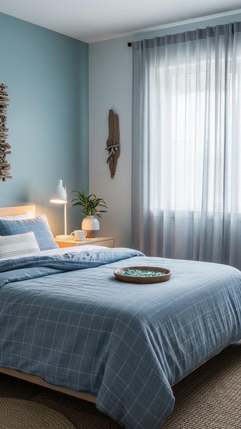 Sink into a Soft Blue Sanctuary where muted, coastal-inspired hues calm the senses and make sleep feel inevitable. You’ll layer cozy chambray bedding, muted aqua walls, and linen drapes that breathe. Light’s soft, textured accents and minimal décor free your mind. You move easily, untethered — a modern coastal refuge that’s intentional, airy, and designed for restorative rest and spontaneous mornings.