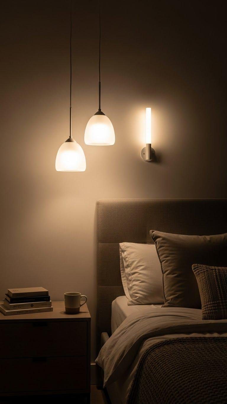 When you hang low, frosted pendants and slim wall sconces, they pool light where you want it—over bedside tables, a reading nook, or a dressing corner—casting soft, even halos that feel intentional rather than bright.