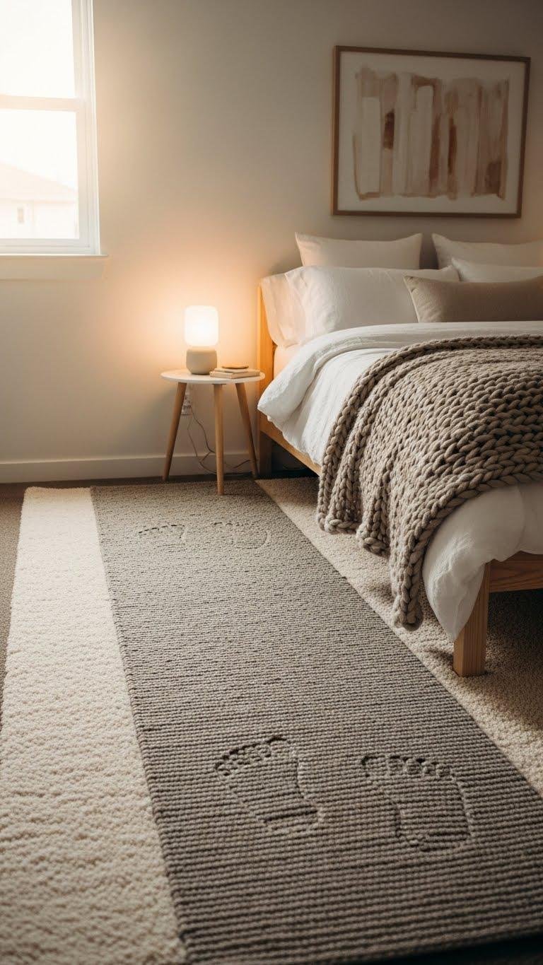 Layering rugs brings instant warmth and texture underfoot, turning a minimalist bedroom into a tactile sanctuary.