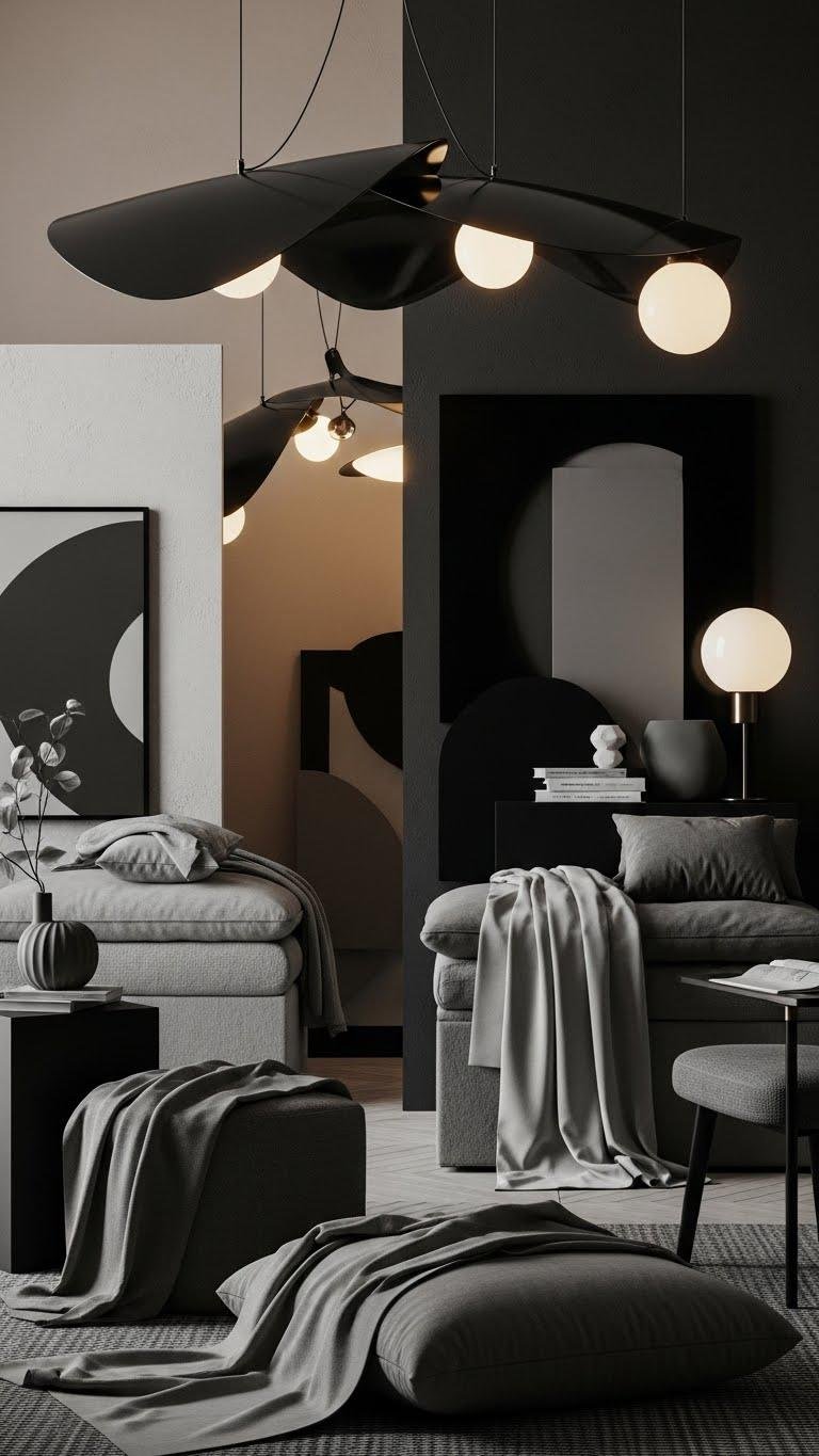 You’ll craft a monochrome moodboard that reads modern and free; choose tonal textiles, varied textures, sculptural lighting, and a few bold shapes so the space breathes, feels curated, and invites rest.
