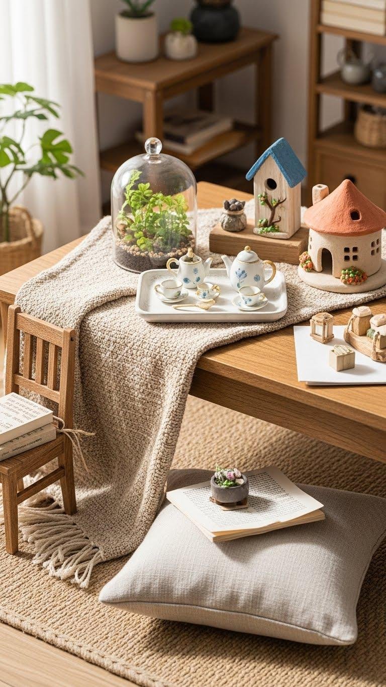 Add a miniature terrarium, scatter scale furniture, tuck a paperback, and let sunlight invite slow, unfussy freedom.