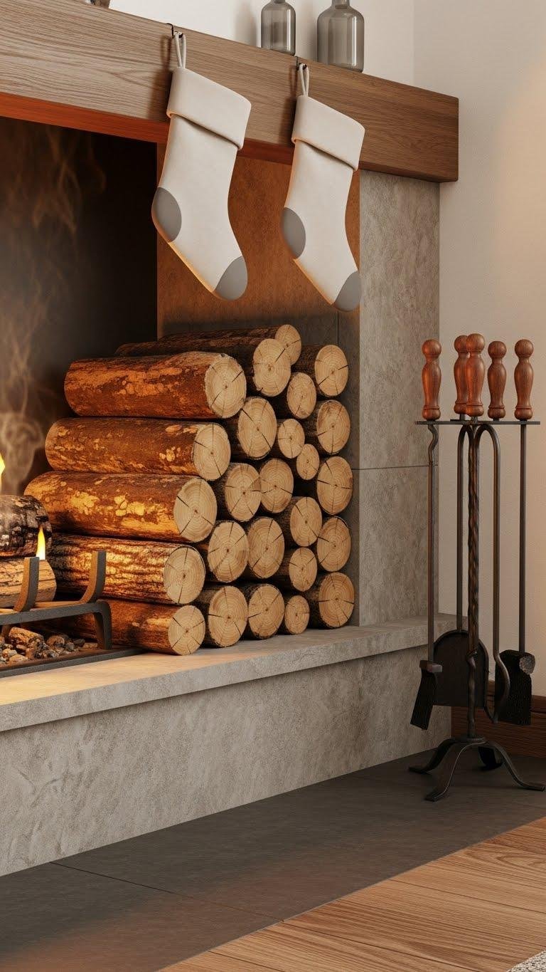 Let the quiet warmth of your reading spot flow into a fireplace corner that celebrates both function and form: stack seasoned logs with care, hang a simple stocking or two, and set tools in a neat cluster so the hearth feels both ready and curated. You’ll touch wood grain, smell smoke, and practice hearth maintenance and ember safety, keeping freedom to relax without worry.