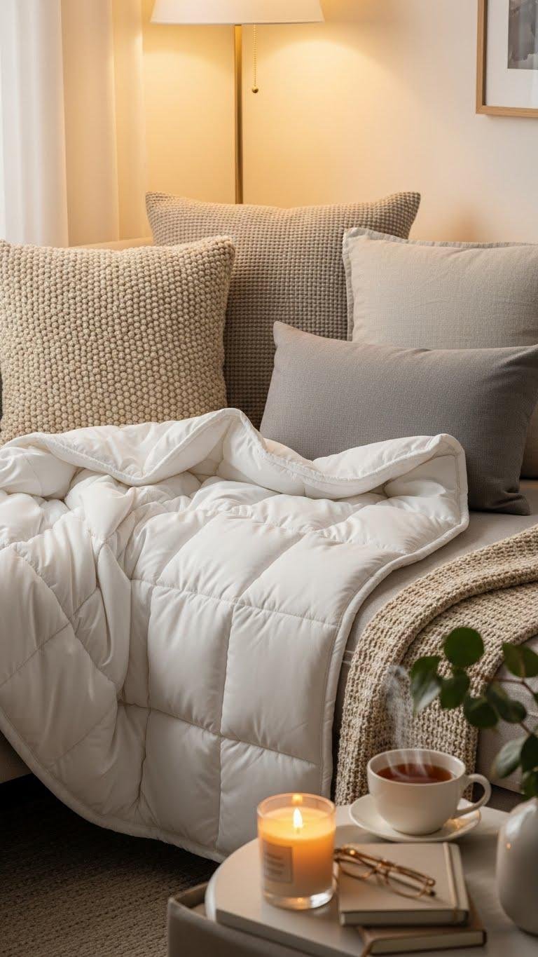 Sink into a cocoon of calm: a weighted blanket corner turns a small nook into a deliberate refuge where tactile comfort and low lighting invite slow breaths. You’ll arrange cushions, a texture study of boucle and linen, then drape a weighted blanket for grounding.