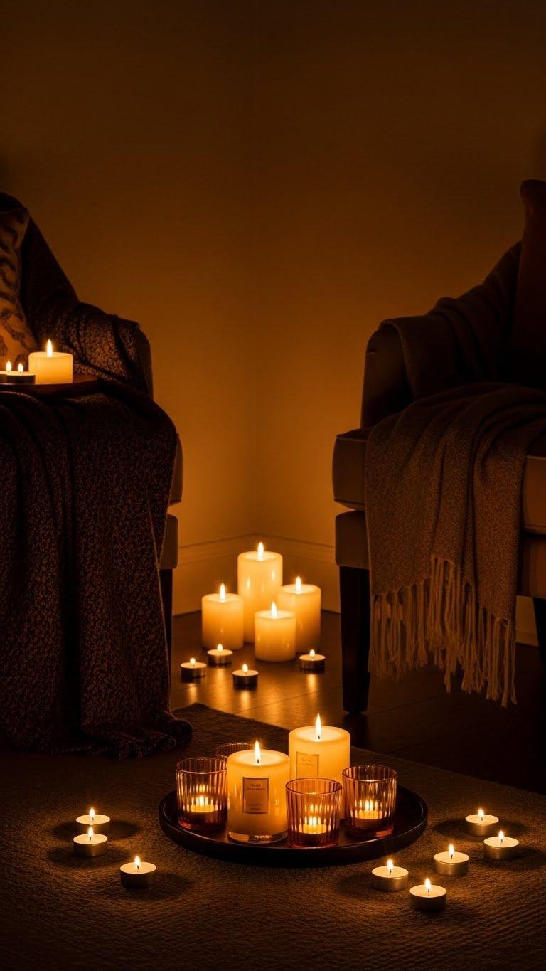 When evening settles and the room softens, you light a few candles and let their warm glow redraw the space into something intimate and slow. You arrange a scented votive arrangement on a low tray, scatter a tea light centerpiece, and sink into soft throws. Fragrance unfurls; shadows dance. You breathe out, unclench, and savor the deliberate hush of a liberated, candlelit corner.