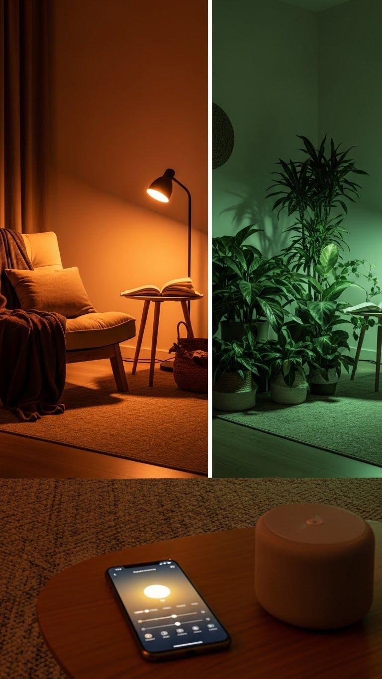 Set the mood with programmable smart lighting scenes that respond to how you use the room—dawn-warm for slow mornings, soft amber for reading, and a muted green wash to highlight botanical accents at dusk. You’ll create ambient presets, automate shifts with circadian tuning, and control scenes from your phone or voice.