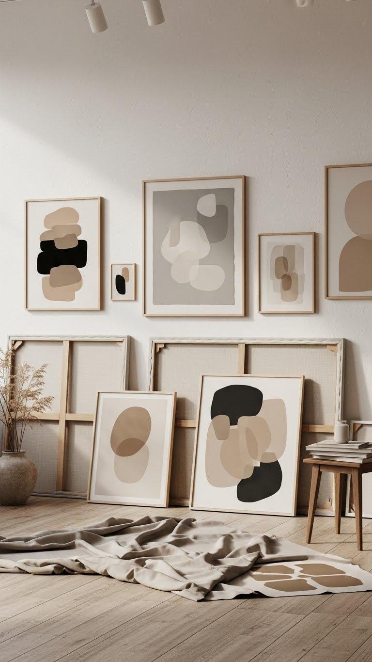 If you want your artwork to breathe, choose warm neutral backdrops that simplify the scene and let shapes and textures take center stage. You’ll pick soft linen tones or a muted canvas finish to anchor pieces without competing. Keep frames slim, spacing generous, and palettes restrained so each work feels deliberate. This approach frees your room, highlights form, and honors calm.