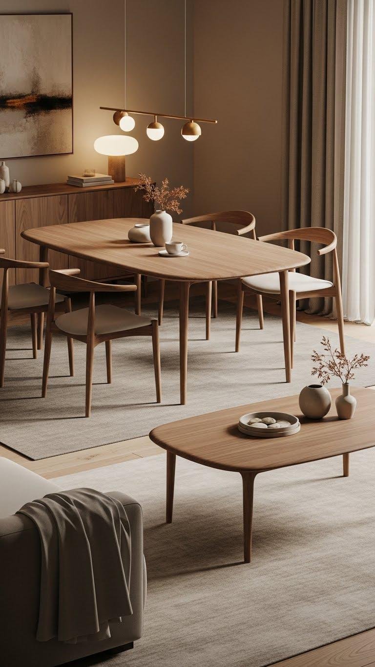 Bring a softer rhythm into your dining and coffee tables by choosing pieces with rounded edges, flowing silhouettes, and tactile surfaces that echo nature’s curves.