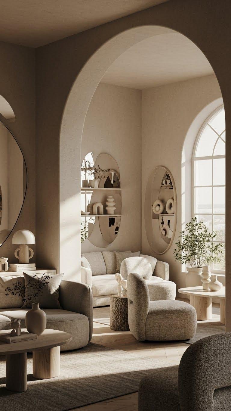 When you trade sharp corners for soft curves, your space immediately feels calmer and more approachable; rounded mirrors and arched doorways soften sightlines, diffuse light, and invite movement through a room.