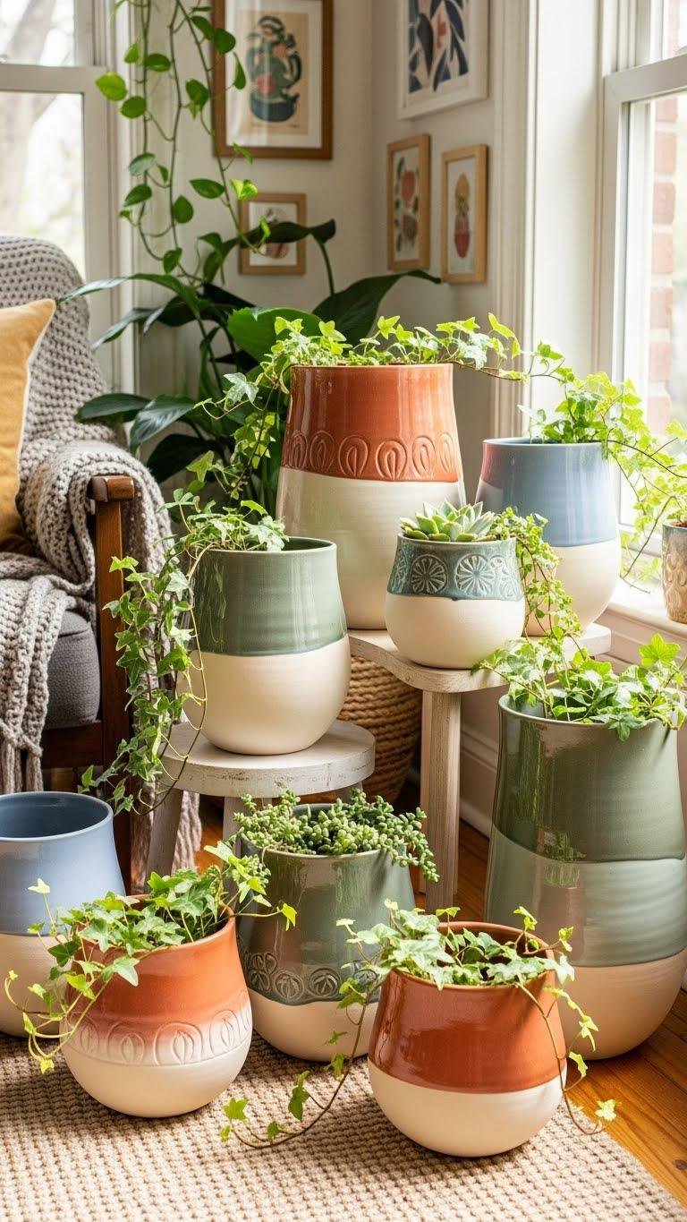Curves and soft textures set the stage for another small change that makes a big visual impact: handmade ceramic planters. You’ll choose hand built pots with unique silhouettes that echo your furniture’s flow. Mix matte and glazed textures to catch light and invite touch. Place a few statement pieces where sunlight spills—joyful, free, and effortlessly personal without overcomplicating your space.