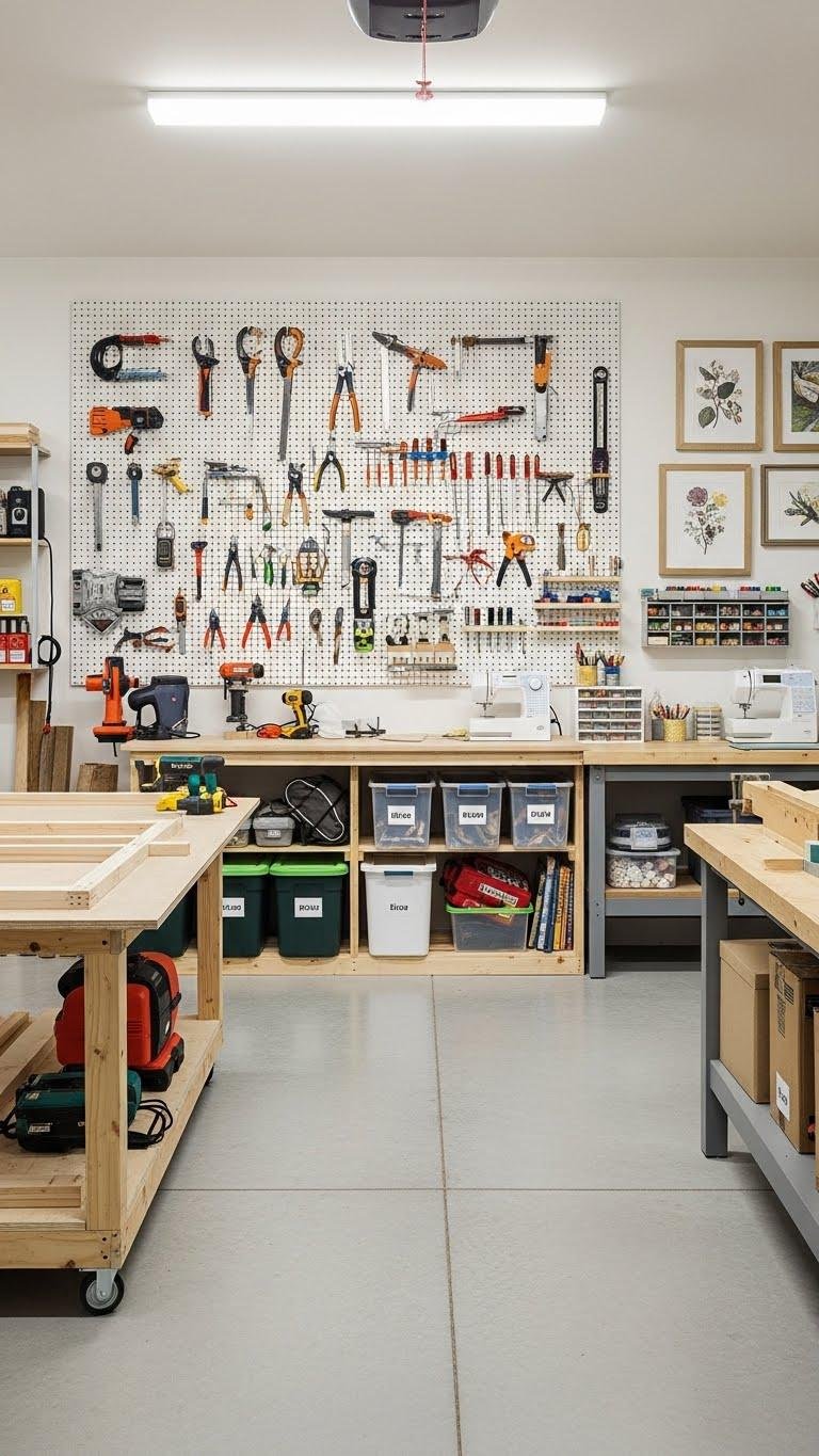 You’ll create tool zones with pegboards, carts, and cabinets, add shelf labels for quick retrieval, and keep floor space open so movement feels effortless and ownership of your space feels freeing.