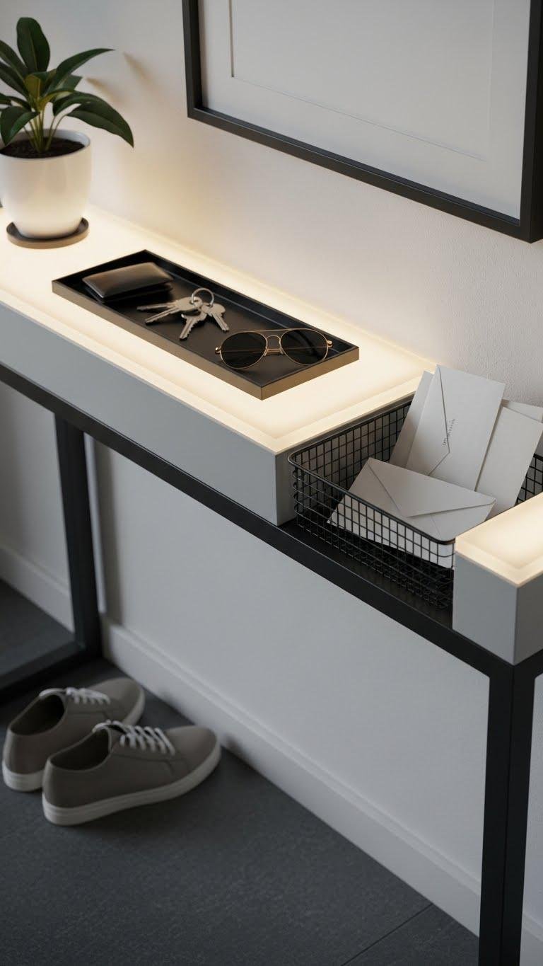 Create a calm entry console with a slim tray and a key basket for loose items. Train yourself to always return objects there; the ritual keeps surfaces clear, choices minimal, and your mornings freer.