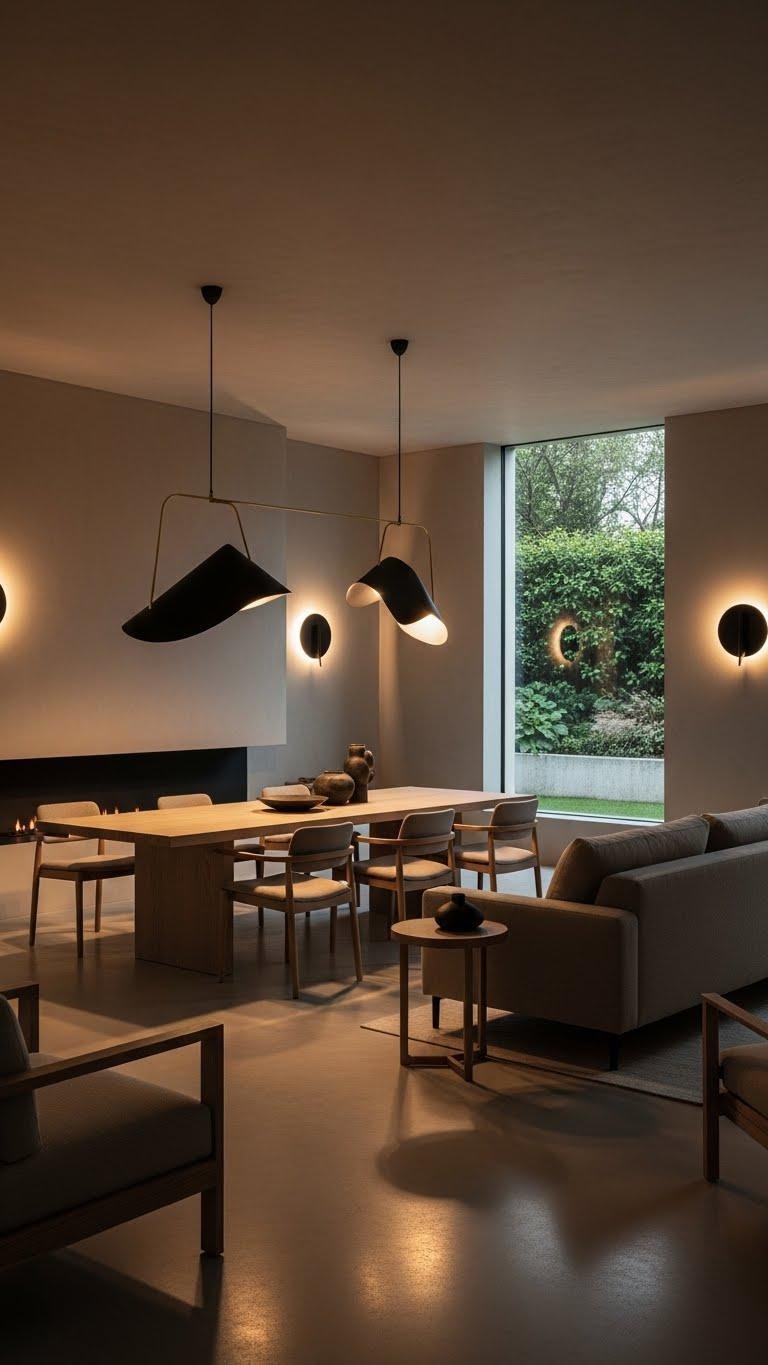 Bring sculptural lighting into the room to anchor your neutral scheme with quiet drama and purpose. You’ll choose architectural pendants and fixtures with minimal silhouettes to create a bold, restrained focal point.