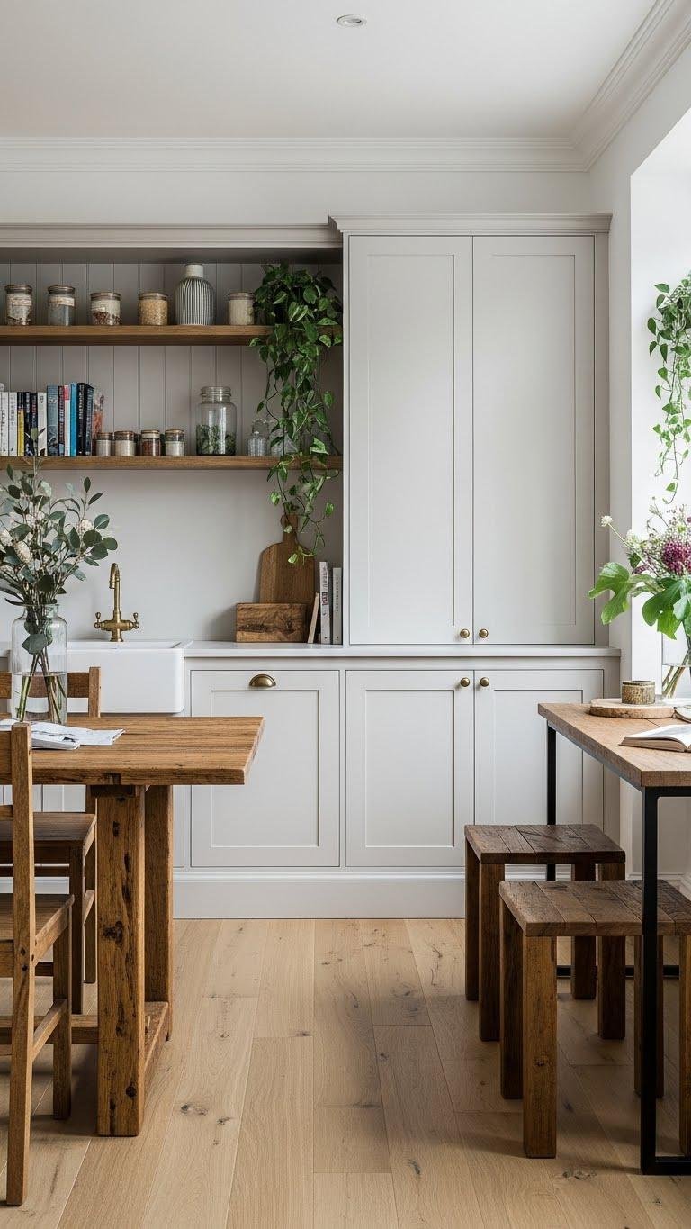 You’ll welcome aged patina on handles and trays, pairing warm metals with satin contrasts in fixtures and frames.