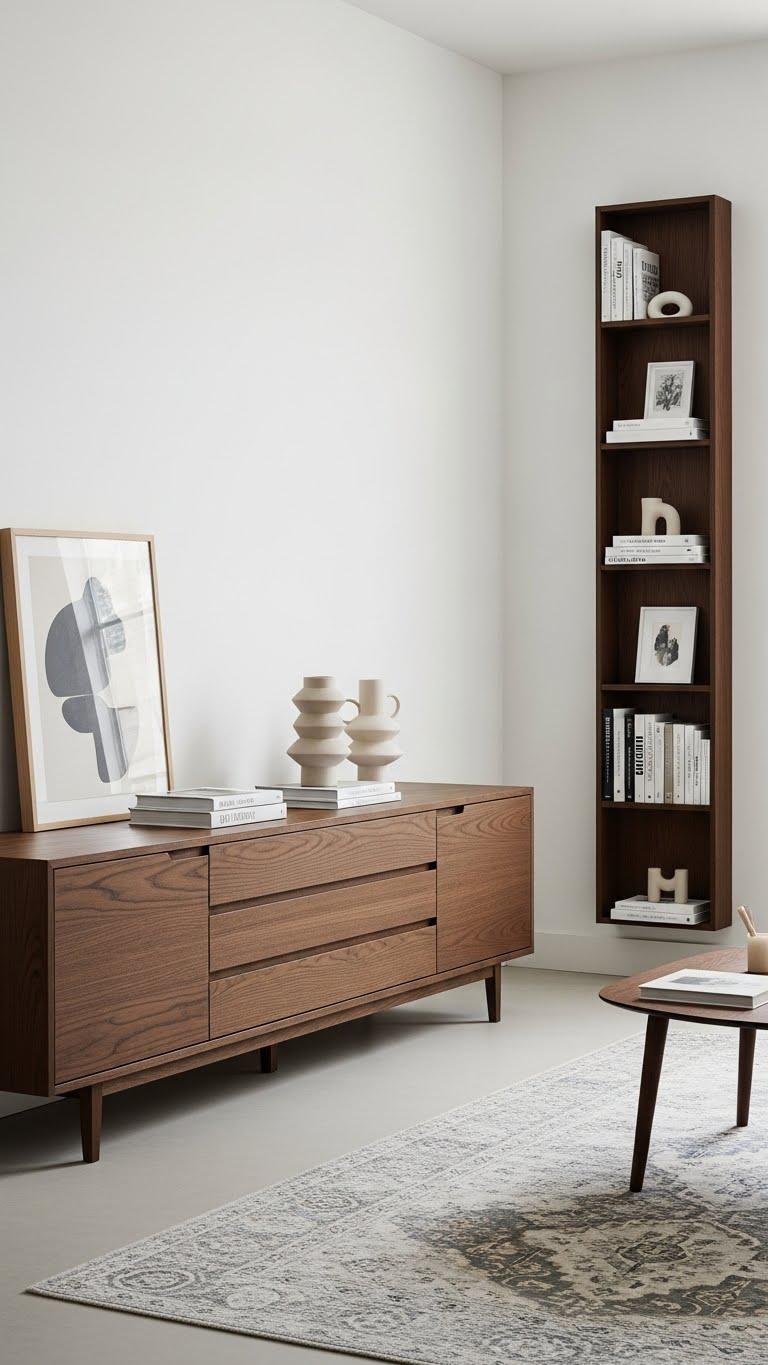 You’ll choose hand rubbed finishes, open shelving that breathes, and seamless joints to keep lines pure. Conceal fastenings with hidden hardware so your space feels liberated, calm, and confidently refined.