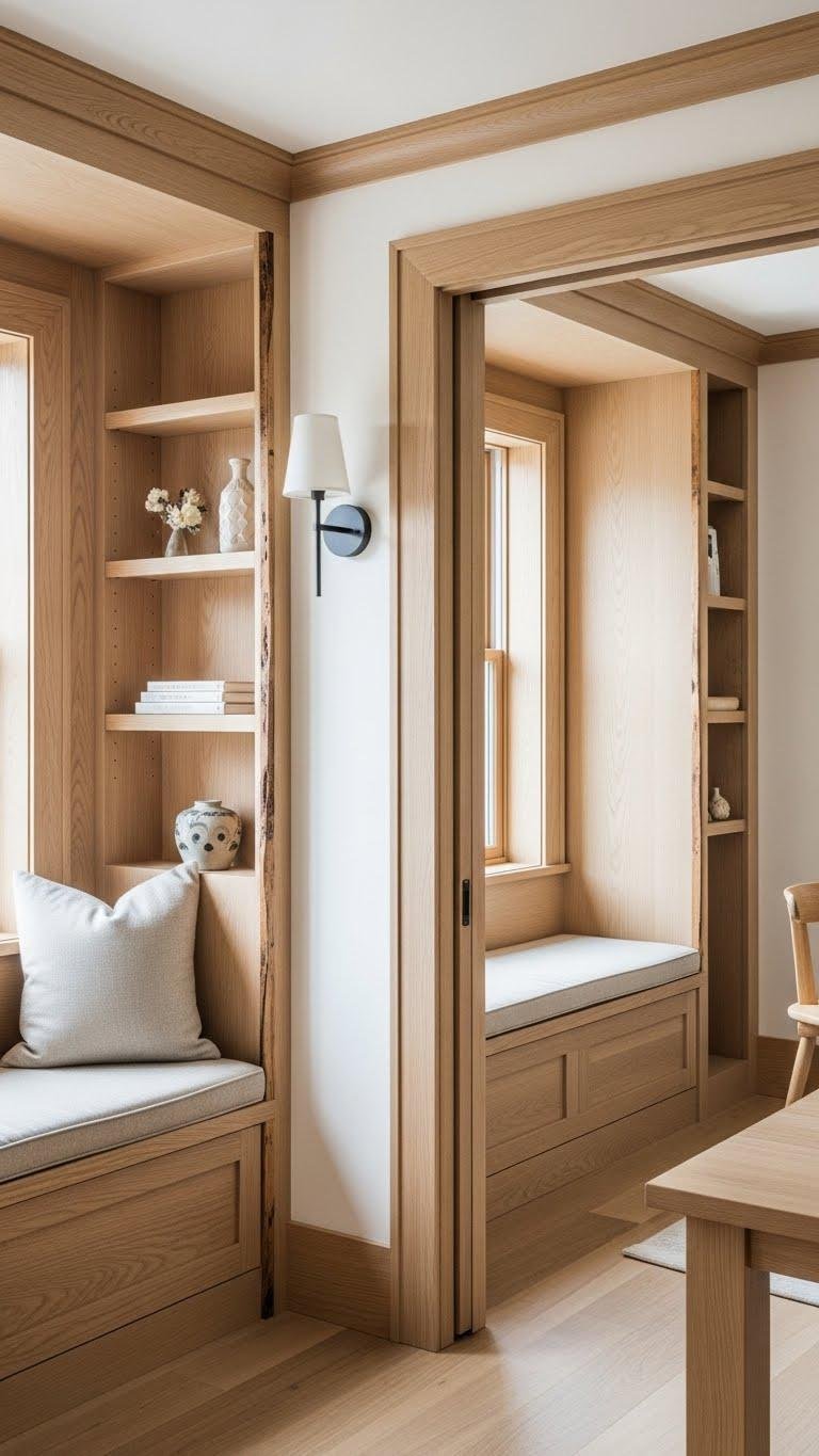 Oiled Wood Millwork and Built‑In Shelving