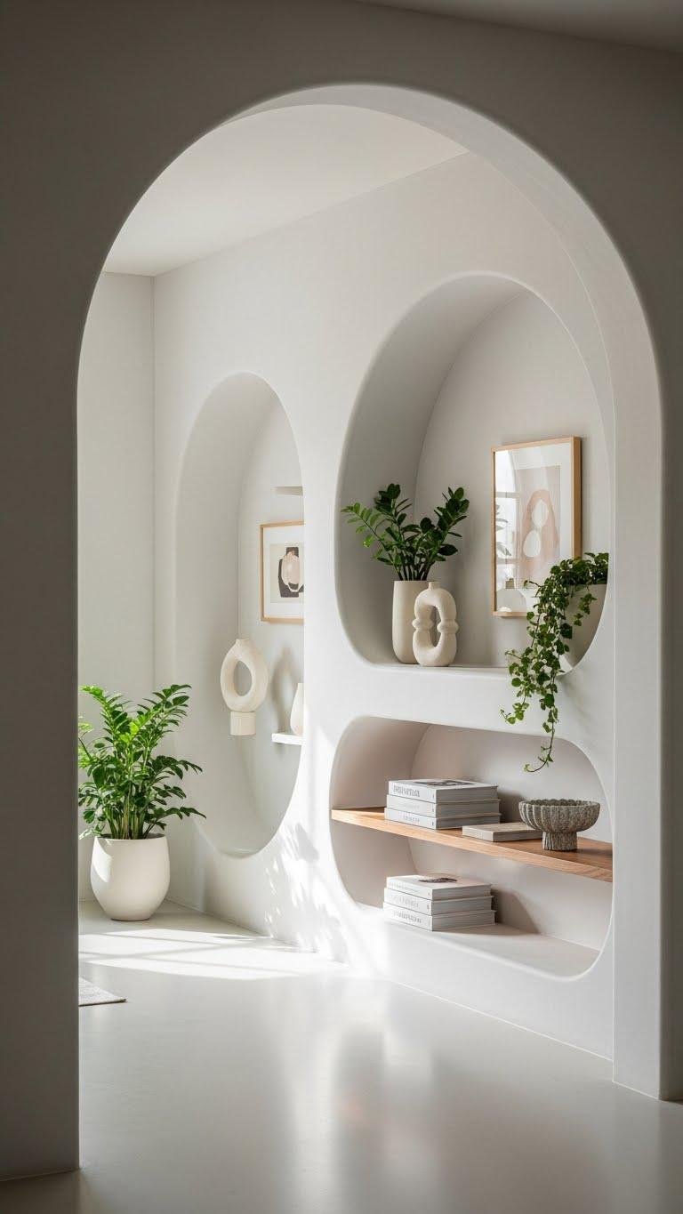 When you step through an arched doorway or pause at a rounded niche, the room’s geometry softens and a quiet, intentional elegance takes over. You’ll embrace arched alcoves and rounded niches as sculptural framing for art, plants, or a simple shelf.
