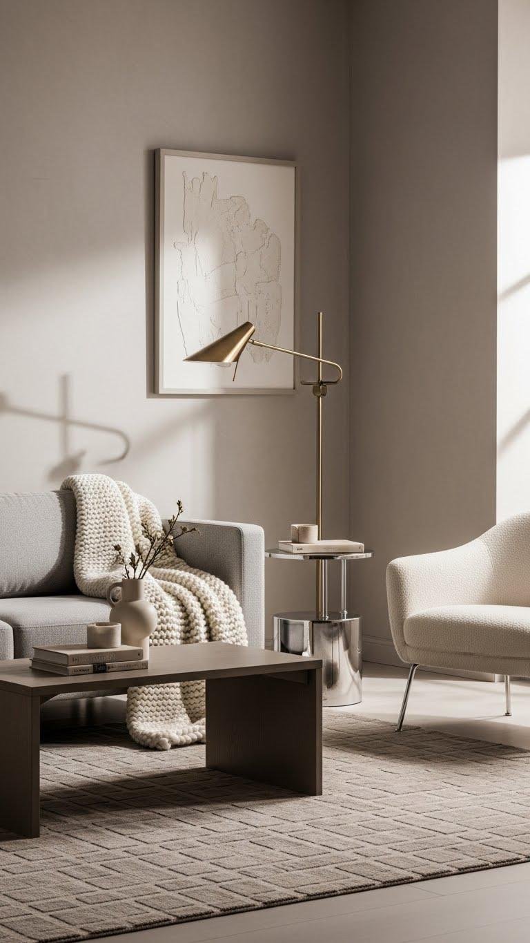 If you stick to a tight tonal range, you can build depth and warmth without introducing competing hues. You’ll layer soft taupe, ivory and warm gray in varied finishes to create subtle contrast and richness.