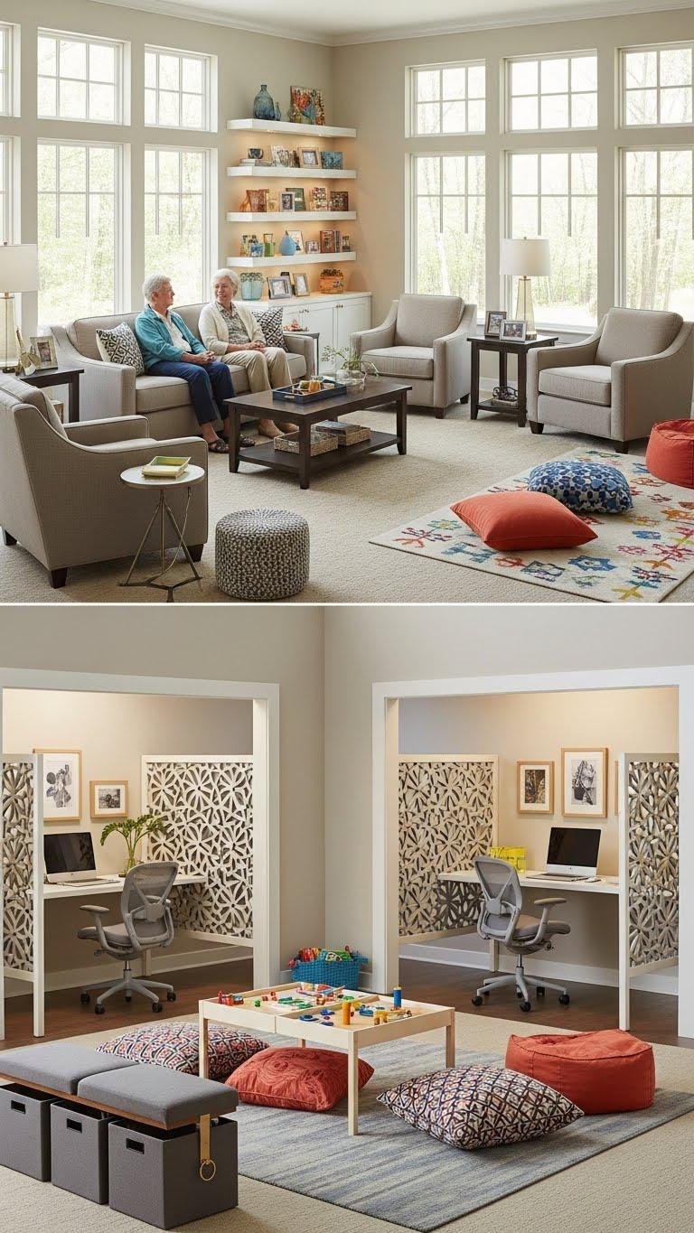Think about designing a family room that bends and adapts as easily as your daily routine — comfortable seating zones for grandparents, play-friendly surfaces for kids, and flexible nooks for remote work or teens’ hangouts.