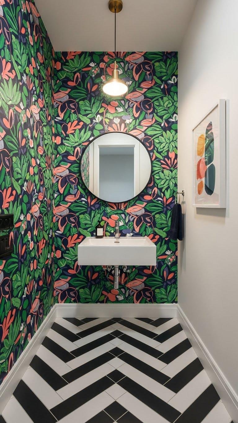 Think of your powder room as a tiny stage where pattern plays the lead — bold wallpaper, geometric tile, or dramatic paint can give a small space big personality without overwhelming it.