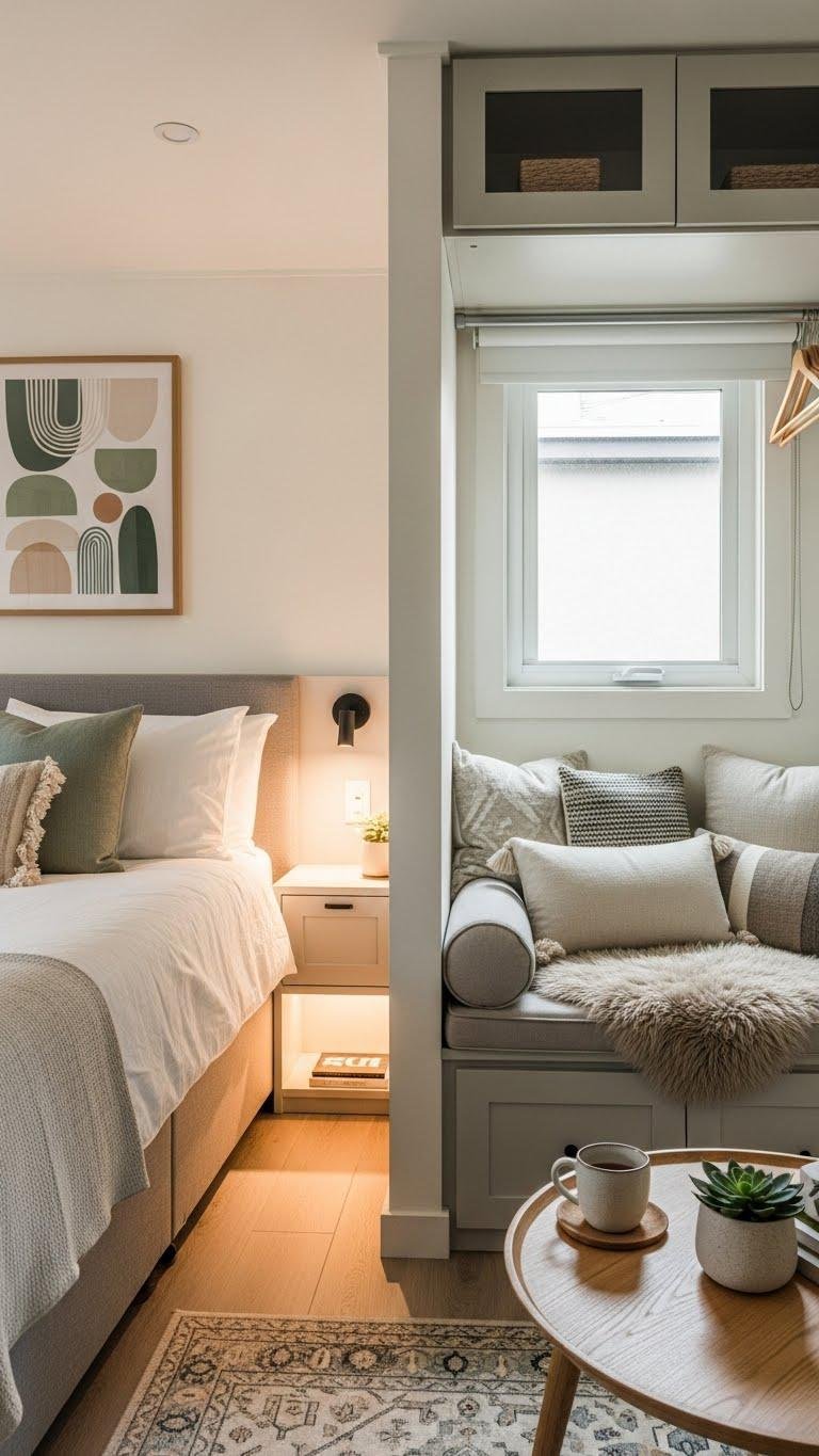 Reserve quiet rest corners with soft textures and dimmable lighting so you can recharge, choose freely, and live uncluttered.