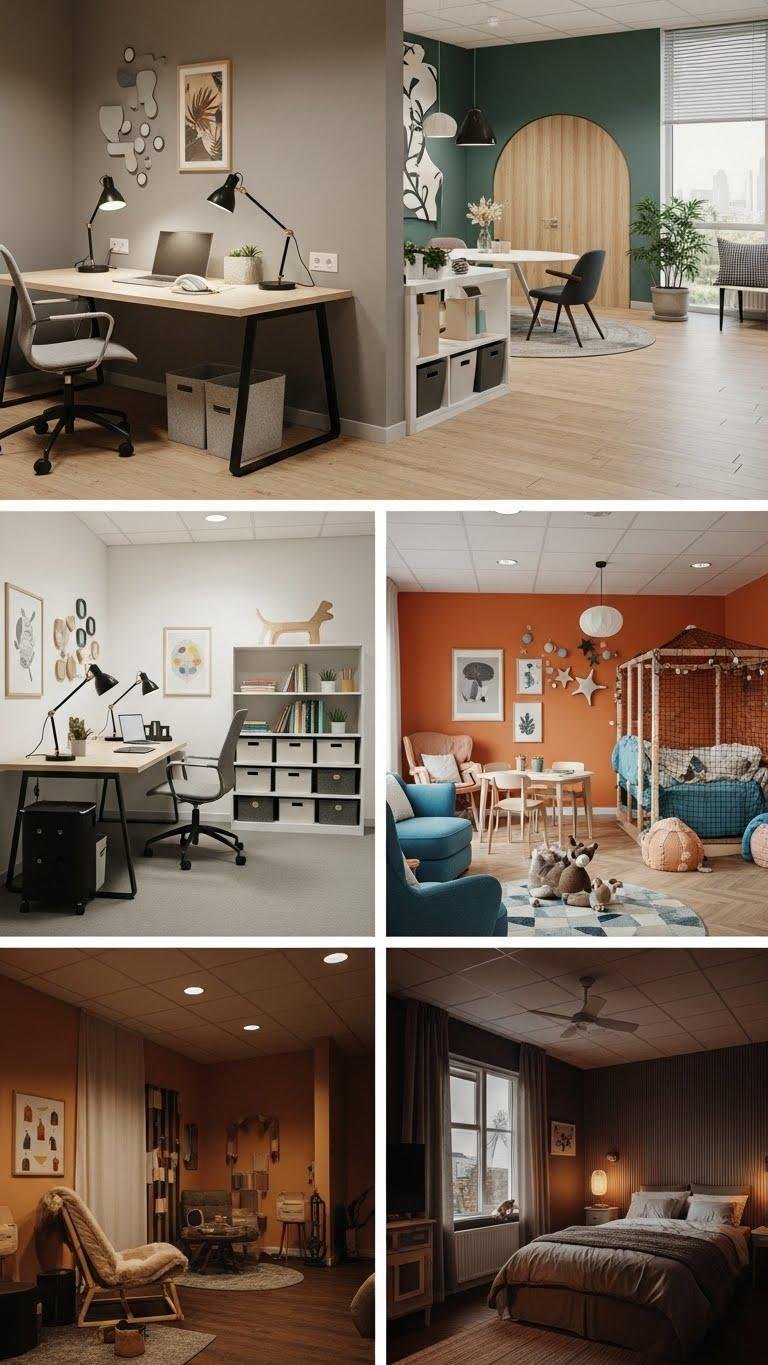 You’ll choose terracotta accents, linen textures, and matte wood to craft a grounded, uncluttered workspace. Let natural light and sculptural ceramics define zones so you can work freely, stay inspired, and move between tasks with quiet confidence.