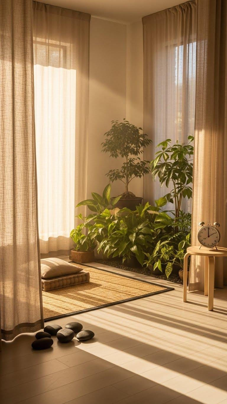 You orient a meditation alcove toward morning light, add a low mat and neutral cushion, and carve a breathwork corner with a simple timer and plants. This indoor zen retreat frees your schedule, encourages daily rituals, and simplifies restful presence.