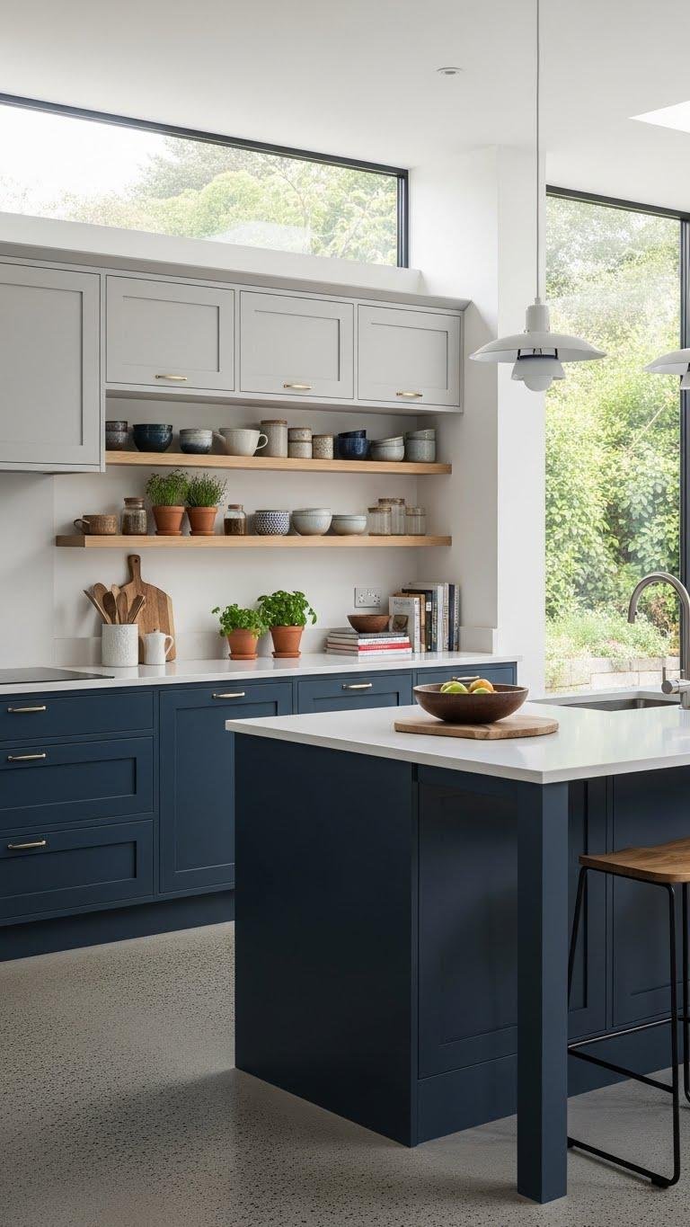 Anchor your open-plan layout with painted cabinets that carve out a distinct kitchen zone without closing the space off. You’ll mix two tone palettes to define areas, pair matte finish fronts with open shelving for airy display, and choose streamlined storage to keep surfaces free.