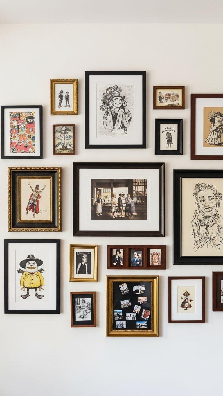 Mix in heirloom finds, travel souvenirs, and quirky prints to build an eclectic gallery wall that tells your story at a glance. You’ll arrange story driven pieces with varied frames, balancing scale and negative space.