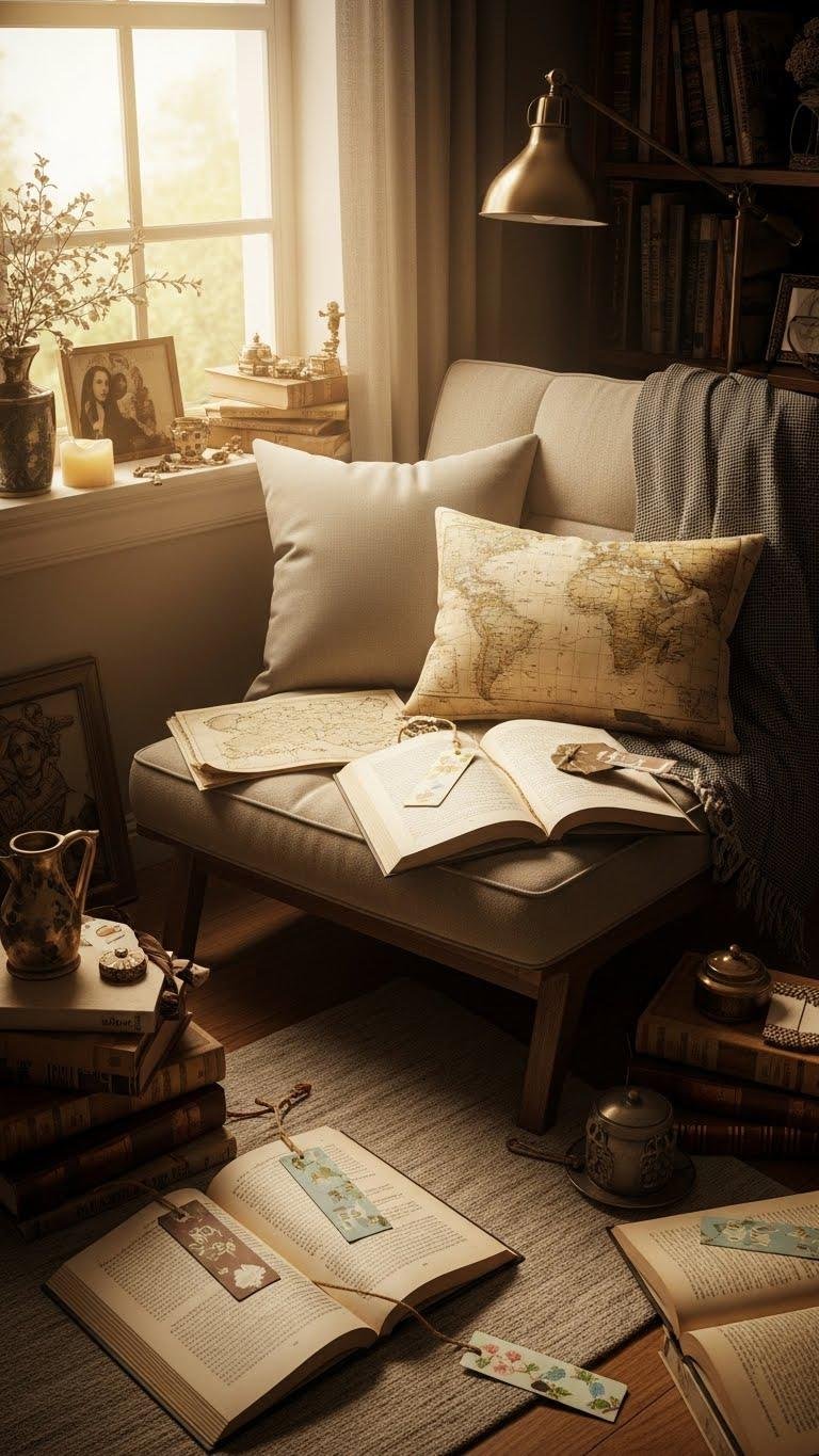 You’ll choose muted tones, a low slung chair by a window seat, a soft glow lamp, tea scented pages, a faded map, family heirloom trinkets and handcrafted bookmarks to guide liberated, slow afternoons.