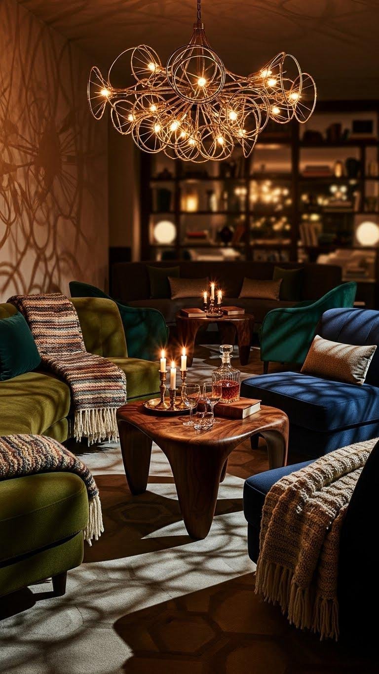 When you dim the lights and let a single, sculptural chandelier claim the room, the lounge shifts from casual seating to a curated experience—its warm glow sculpts the textures of upholstery, highlights the weave of artisanal throws, and casts deliberate shadow-play across the walls.