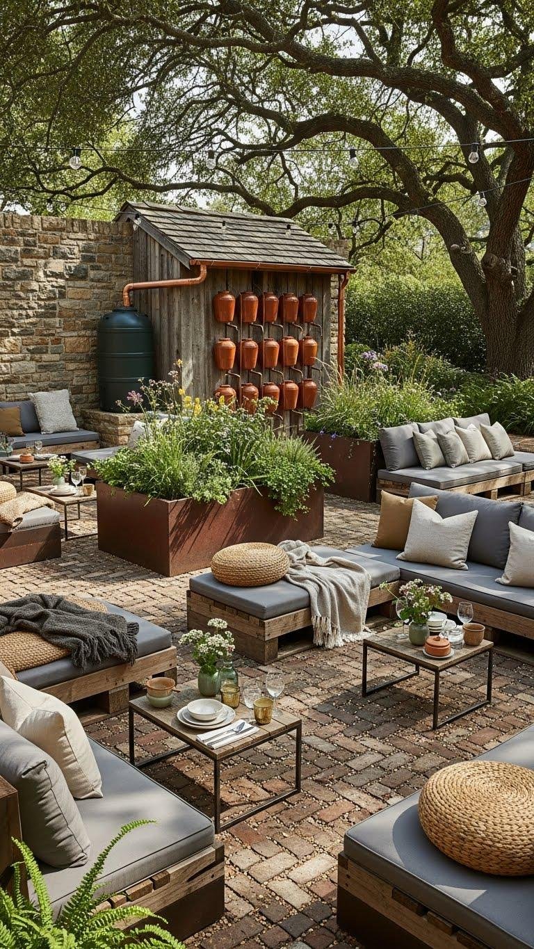 If you want gatherings that feel effortless and thoughtful, design your outdoor entertaining space around sustainability without sacrificing style. Choose permeable paving to reduce runoff and keep surfaces airy. Arrange modular seating that invites flow and freedom. Harvest rain, use greywater irrigation for lush planters, and pick durable, reclaimed materials so your patio ages gracefully while guests relax in a conscious, carefree setting.