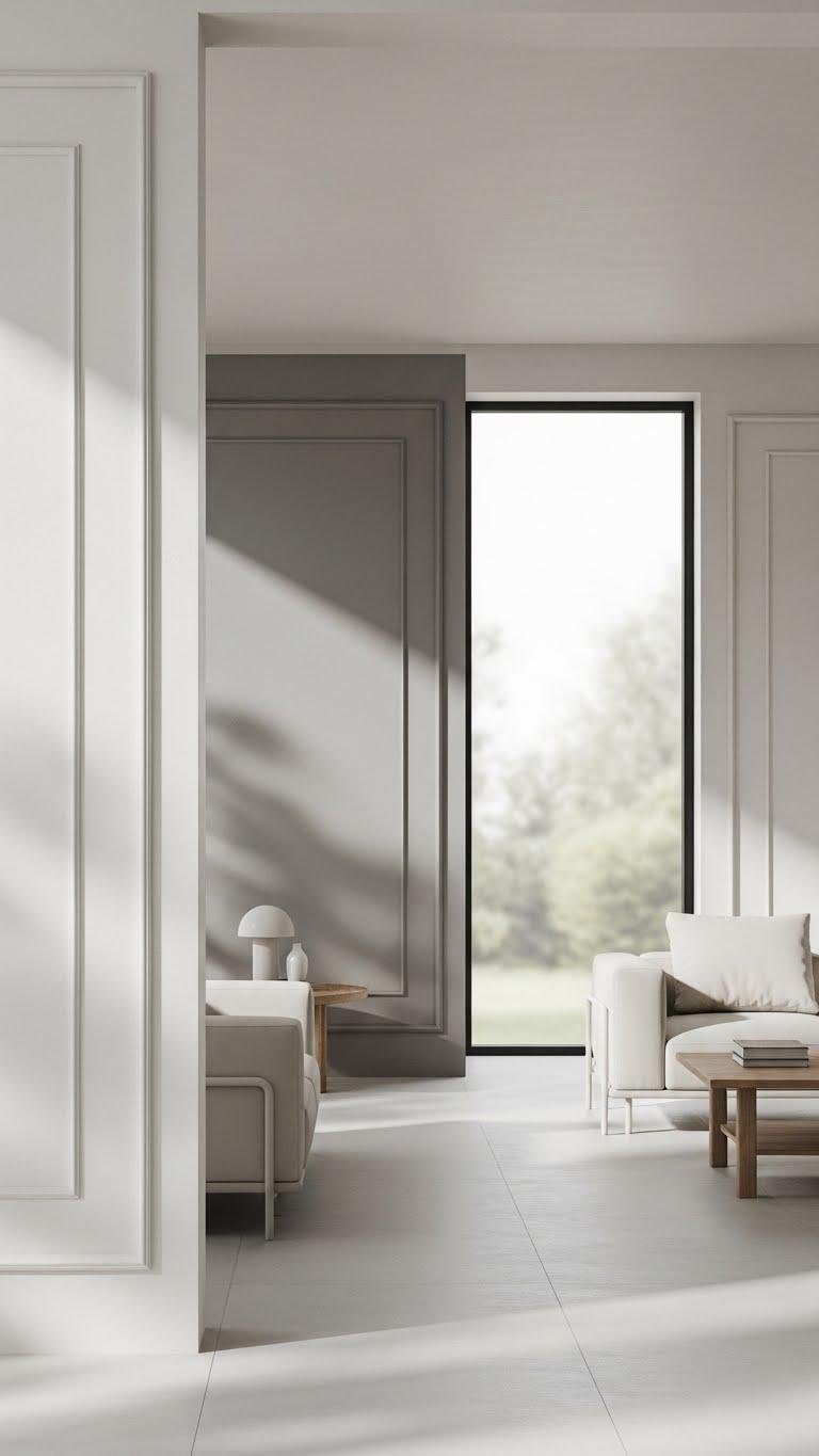 Use layered trim to create subtle depth without clutter. The result feels airy yet anchored—minimal, modern, and freeing—so your space breathes and invites calm.