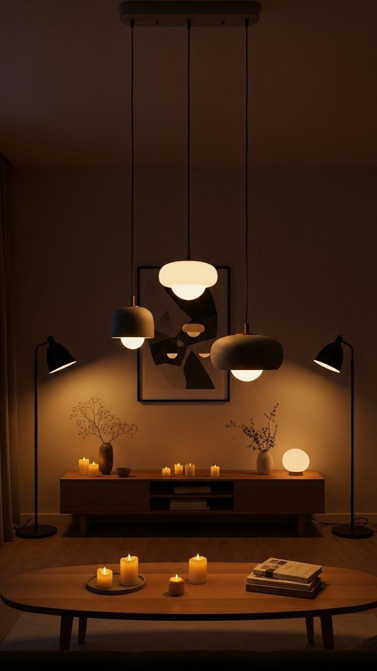 You’ll mix dimmable overheads with pendant task lights for reading, scatter soft candlelight for hush, and place accent floor lamps to sculpt corners.