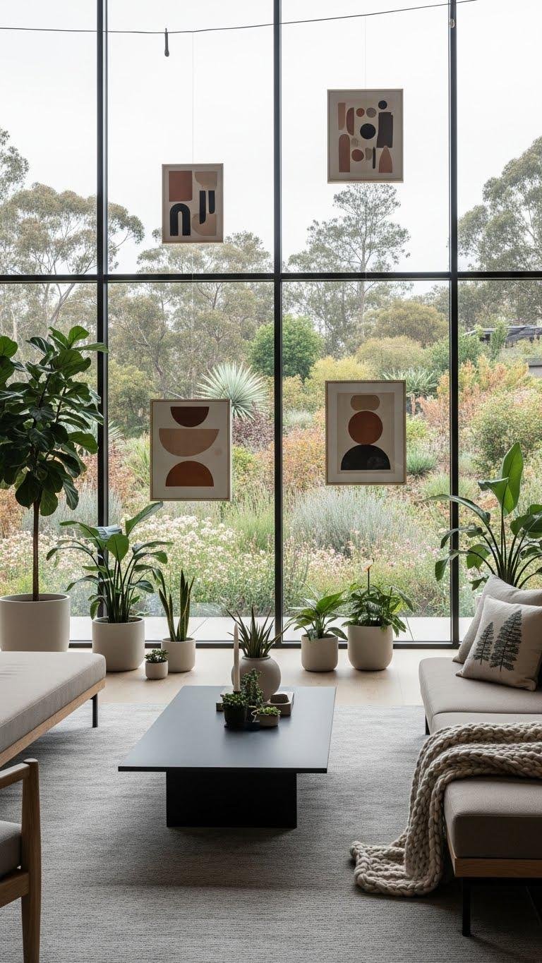 After you’ve layered light to shape evenings, open sightlines to the outside so the room breathes into the landscape. You’ll frame views with low furniture, slim frames and muted palettes, encouraging biophilic sightlines that calm and expand.
