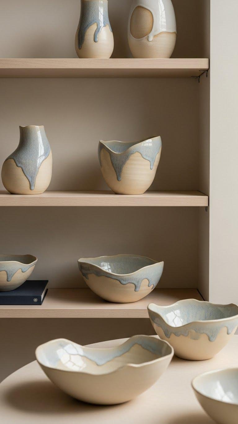 With soft curves and irregular silhouettes, organic ceramics bring a tactile warmth that offsets rigid lines and adds a lived-in, contemporary feel to your space. You’ll choose handbuilt vases and asymmetrical bowls to introduce subtle movement, tactile glazes, and imperfect edges. Place pieces intentionally on shelves, mantels, or tables to create calm, liberated vignettes that feel curated without constraint.