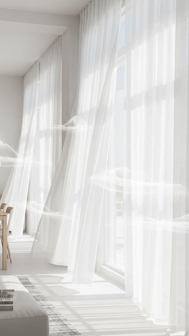 Choose light filtering sheers for privacy that still breathes; mount floor to ceiling panels to elongate walls and let breezes move freely, creating a minimalist, liberated sanctuary.