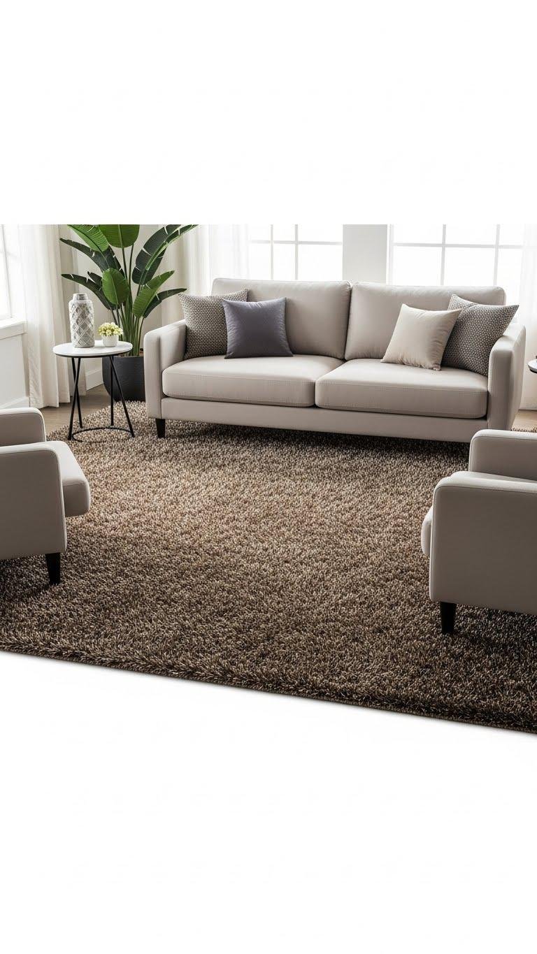 Plush-pile rugs give your seating area a defined, tactile center—lay one under sofas and chairs to visually and physically tie the group together. Choose a dense pile for comfort and noise dampening, then play with color depth and layered sheens to add subtle luxe without clutter.