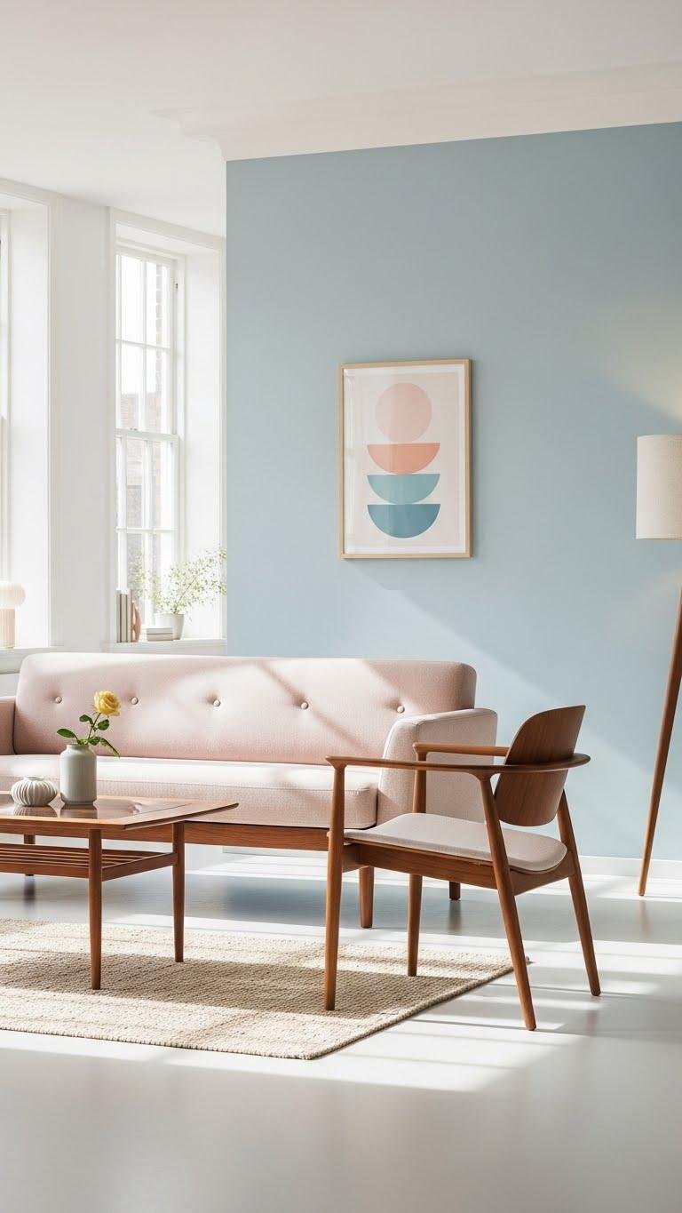 Lean into midcentury modern pieces finished in soft colors to keep your space streamlined yet inviting.