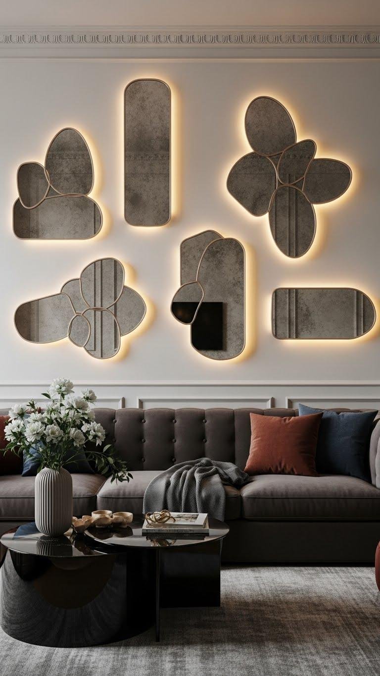 After you’ve let a bold sofa take the spotlight, use mirrors to amplify that impact and brighten the room. Hang an antique mirror for character, pair with LED backlighting for a luxe glow, and experiment with angled reflection to stretch sightlines.