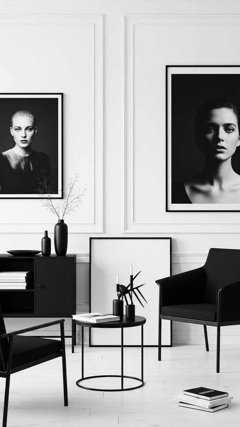 Although stark contrasts can feel severe, pairing pure black with crisp white in a minimalist living room lets each form and texture speak clearly.