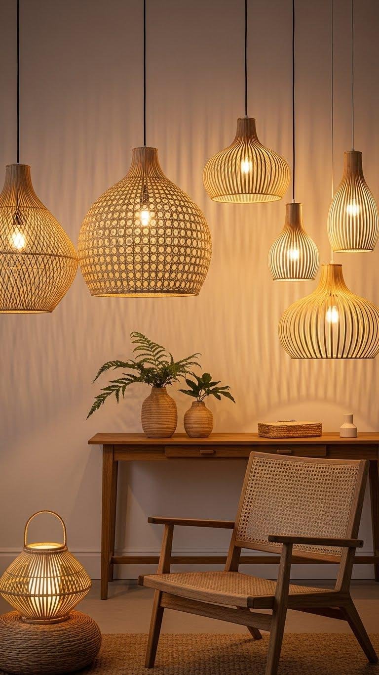 Use Rattan or Bamboo Pendant Lights for Warmth