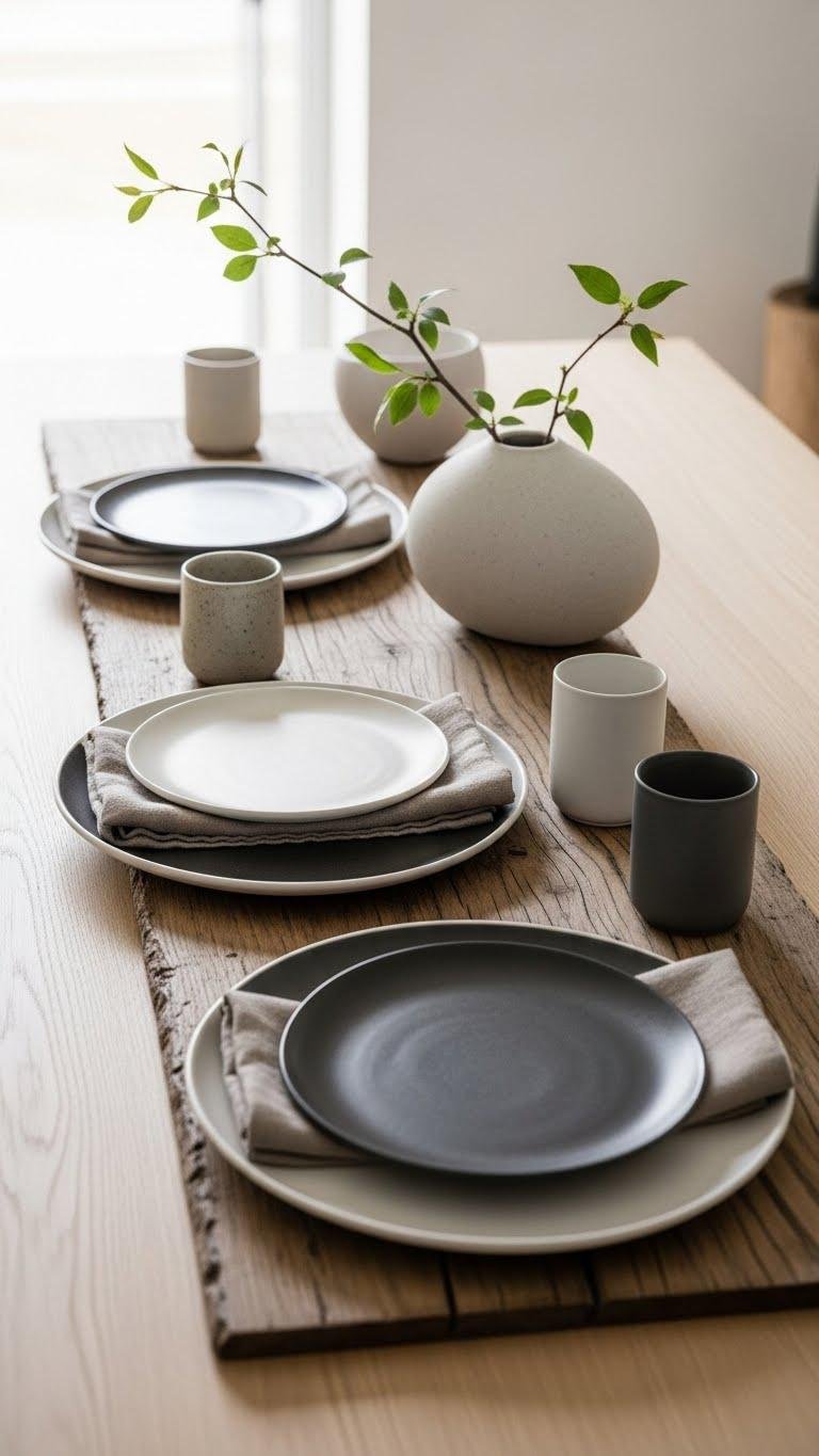 Although minimalism favors restraint, you can make a simple table sing by layering tactile elements — think matte ceramic plates, a raw-wood runner, and a low, sculptural vase — so each piece reads deliberate and modern.
