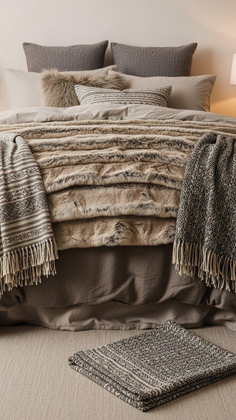 Place throws asymmetrically, vary pile heights, and let pieces drape naturally so your bedroom feels liberated, curated, and effortlessly cozy.