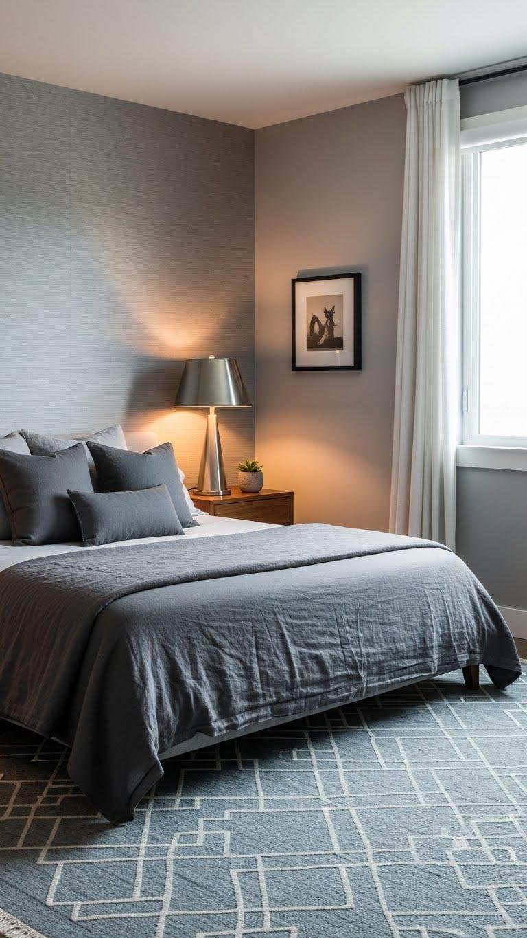 Often a muted grey will quietly anchor a bedroom, giving you a calm backdrop that still feels modern and layered.