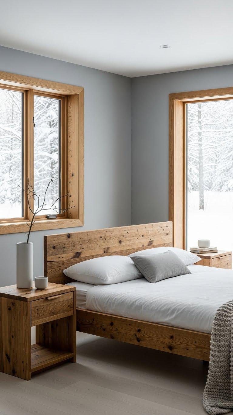 Prioritize sustainable sourcing—look for FSC certification or reclaimed timber—and pick simple finishes that age beautifully. You’ll create a calm, airy winter retreat that feels deliberate and liberating.