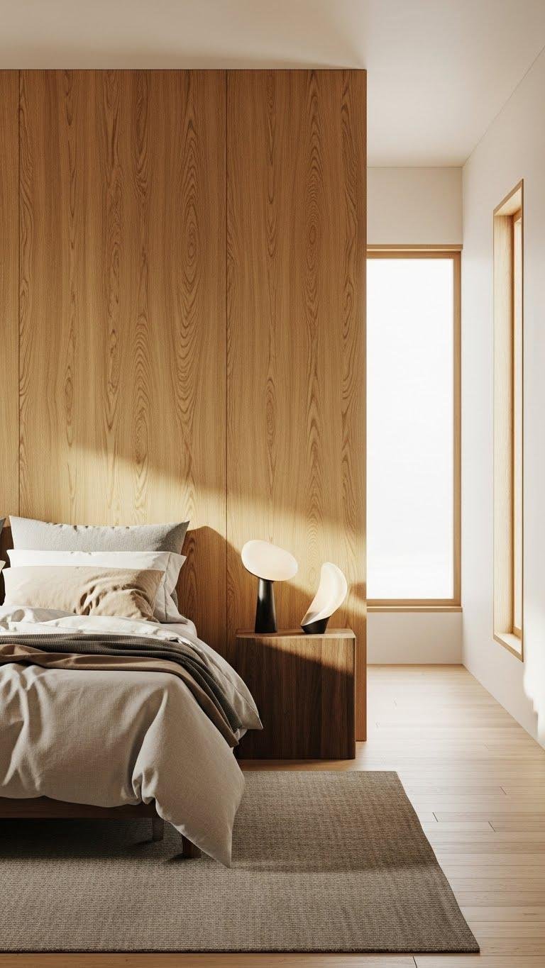 Keep bedding airy, let natural light play across the wood, and enjoy a minimal, freeing retreat that feels steady but unconfined.
