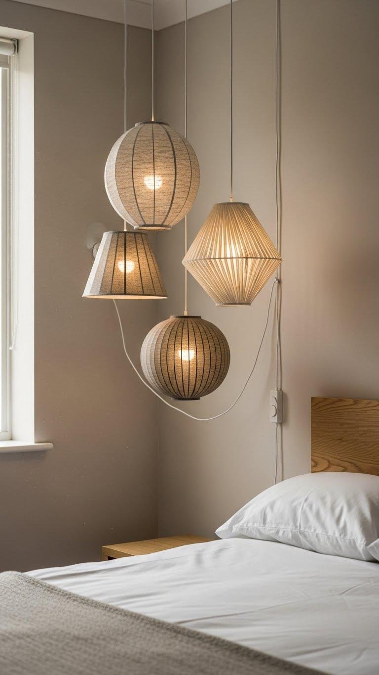 If bedside lamps create cozy little constellations, lantern pendant lights will give the whole room a soft, architectural glow. You’ll hang paper lanterns or woven shades to float light without clutter, pairing them with dimmer switches so you control mood and freedom.